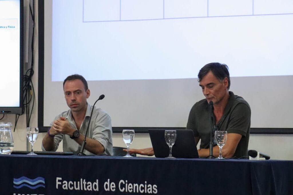A continuación, el Vicedecano de la Facultad, Mg. Ricardo Azario, y el Secretario de Asuntos Estudiantiles y Graduados, Lic. Facundo Babio, brindaron información sobre el dictado de los distintos módulos del CAVU (Matemática, Química, Física, Lectura, escritura y alfabetización digital en la Universidad y Estudiar en la UNER), así como sobre las políticas de acompañamiento estudiantil. Entre ellas, se destacaron las becas, las actividades deportivas, el comedor y otros dispositivos de apoyo disponibles para las y los estudiantes durante su vida universitaria.