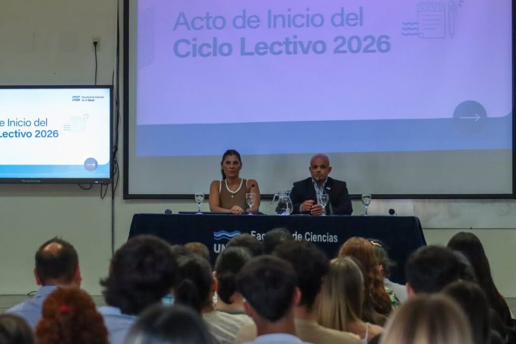El lunes 9 de febrero, la Facultad de Ciencias de la Salud de la Universidad Nacional de Entre Ríos realizó el Acto de Inicio del Ciclo Lectivo 2026, en el marco del comienzo del Curso de Ambientación a la Vida Universitaria (CAVU). En esta oportunidad, se dio la bienvenida a más de 800 estudiantes ingresantes que inician su trayectoria universitaria en las distintas carreras de grado y pregrado de ambas sedes.