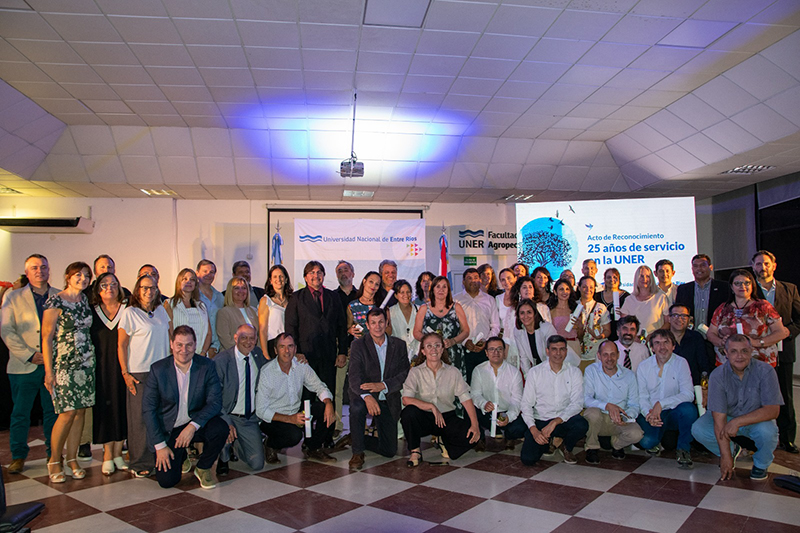 El decano, Mg. Gregorio Etcheverry, y el equipo de gestión de la Facultad de Ciencias de la Salud felicitan a las y los trabajadores —docentes y no docentes— reconocidos por la UNER por sus 25 años de trayectoria al servicio de nuestra institución.