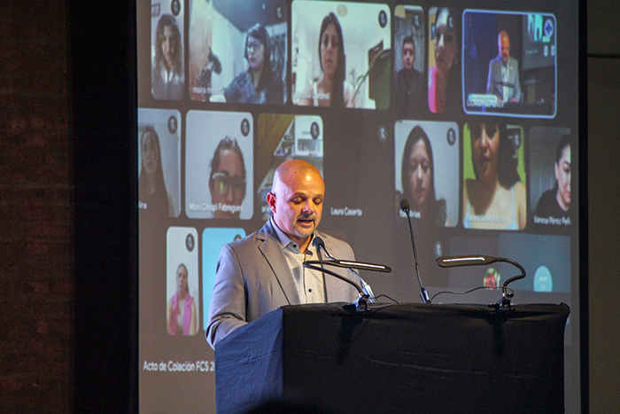 En su mensaje, el Decano Etcheverry destacó que cada graduación es “mucho más que la entrega de un título: es la confirmación de un compromiso colectivo con la educación pública, inclusiva y de calidad”. Subrayó que detrás de cada trayectoria hay esfuerzo compartido y que la misión de la Facultad es formar profesionales con rigurosidad científica, pero también con valores éticos y humanos. “A partir de ahora, los conocimientos que ustedes poseen se transforman en una responsabilidad social: la de cuidar, acompañar e intervenir con respeto, empatía y excelencia en cada ámbito donde ejerzan su profesión”.